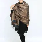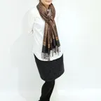 スタンダートな大判サイズで巻いても羽織っても、どちらも使いやすいタイプです。特に羽織は全体の印象が大きく変わります。
