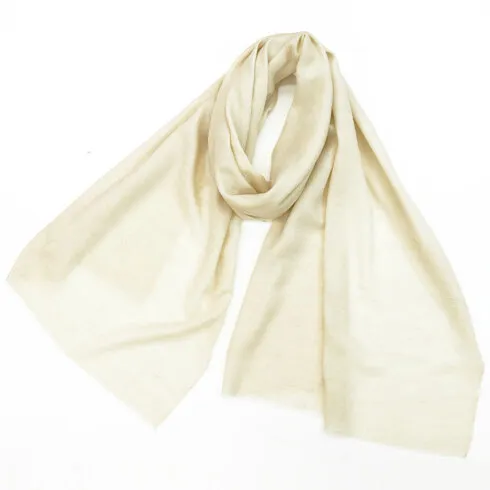 生地感よりカジュアルな普段使いにも、少しフォーマルなシーンでも使いやすいタイプです。スタイルや場所を問わず合わせることができる優れたストールです。