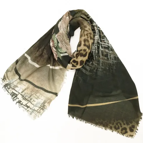 異なる色柄を組み合わせたおしゃれなデザイン。巻き方によってさまざまな表情がお楽しみいただけます。