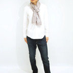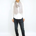 200cm×70cm大判サイズで、巻きでも羽織でもどちらも使いやすいストールです。上半身をすっぽりと覆うことができるため、トップスを気にせず合わせることができます。