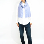 200cm×70cm大判サイズで、巻きでも羽織でもどちらも使いやすいストールです。上半身をすっぽりと覆うことができるため、トップスを気にせず合わせることができます。