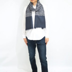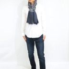 バランスの良い大判サイズで、巻きでも羽織でもどちらも使いやすいストールです。特に羽織は全面に施された刺繍が美しく輝き、サッとあしらうだけでゴージャスな雰囲気に変化します。