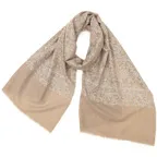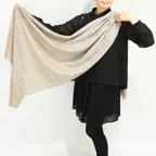 バランスの良い大判サイズで、巻きでも羽織でもどちらも使いやすいストールです。特に羽織は全面に施された刺繍が美しく輝き、サッとあしらうだけでゴージャスな雰囲気に変化します。