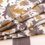 機械織りでは再現できない精密で緻密な模様は、このカニ織りならではの美しさ。まるで絵画のような柄が、糸一本一本から浮かび上がってくる。まさに「織る芸術」と呼ぶに相応しい一枚に仕上がっています。