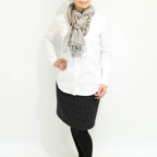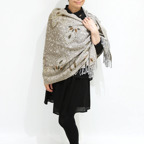 スタンダードな大判サイズで、首に巻くことはもちろん、室内でのひざ掛けにも、肩から羽織る使い方もできます。特に羽織りは、パッと華やかにエレガントな雰囲気に変わります。上半身を覆えるので、着ている服を気にせず合わせることができます。忙しい朝もコーディネートを気にする必要はありません。