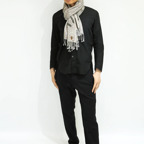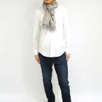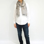 スタンダードな大判サイズで、首に巻くことはもちろん、室内でのひざ掛けにも、肩から羽織る使い方もできます。特に羽織りは、パッと華やかにエレガントな雰囲気に変わります。上半身を覆えるので、着ている服を気にせず合わせることができます。忙しい朝もコーディネートを気にする必要はありません。