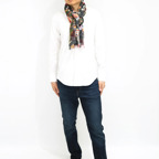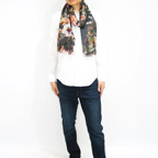 生地感よりカジュアルな普段使いにも、少しフォーマルなシーンでも使いやすいタイプです。スタイルや場所を問わず合わせることができる優れたストールです。