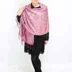 煌めき仕立てのシルクストール。美しい光沢感も相まって、お顔周りを鮮やかに彩ります。
