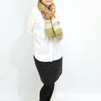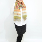 スタンダードな大判サイズで、首に巻くことはもちろん、室内でのひざ掛けにも、肩から羽織る使い方もできます。特に羽織りは、パッと華やかにエレガントな雰囲気に変わります。上半身を覆えるので、着ている服を気にせず合わせることができます。忙しい朝もコーディネートを気にする必要はありません。