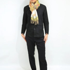 スタンダードな大判サイズで、首に巻くことはもちろん、室内でのひざ掛けにも、肩から羽織る使い方もできます。特に羽織りは、パッと華やかにエレガントな雰囲気に変わります。上半身を覆えるので、着ている服を気にせず合わせることができます。忙しい朝もコーディネートを気にする必要はありません。