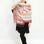 立体感のある刺繍と透け感のある軽やかな質感。ふんわり華やかなウールストールです。