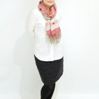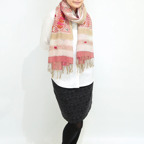 スタンダードな大判サイズで、首に巻くことはもちろん、室内でのひざ掛けにも、肩から羽織る使い方もできます。特に羽織りは、パッと華やかにエレガントな雰囲気に変わります。上半身を覆えるので、着ている服を気にせず合わせることができます。忙しい朝もコーディネートを気にする必要はありません。