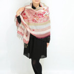 お洒落上手になれる、ウール配色ストール。温かみのある立体感のある刺繍がアクセントに最適です。