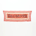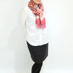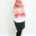 スタンダードな大判サイズで、首に巻くことはもちろん、室内でのひざ掛けにも、肩から羽織る使い方もできます。特に羽織りは、パッと華やかにエレガントな雰囲気に変わります。上半身を覆えるので、着ている服を気にせず合わせることができます。忙しい朝もコーディネートを気にする必要はありません。