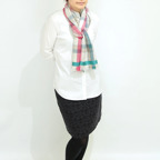 生地感よりカジュアルな普段使いにも、少しフォーマルなシーンでも使いやすいタイプです。スタイルや場所を問わず合わせることができる優れたストールです。