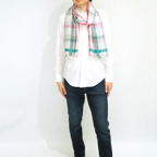 生地感よりカジュアルな普段使いにも、少しフォーマルなシーンでも使いやすいタイプです。スタイルや場所を問わず合わせることができる優れたストールです。