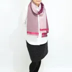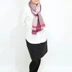 生地感よりカジュアルな普段使いにも、少しフォーマルなシーンでも使いやすいタイプです。スタイルや場所を問わず合わせることができる優れたストールです。