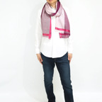 生地感よりカジュアルな普段使いにも、少しフォーマルなシーンでも使いやすいタイプです。スタイルや場所を問わず合わせることができる優れたストールです。