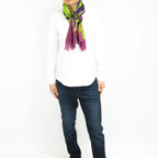 生地感よりカジュアルな普段使いにも、少しフォーマルなシーンでも使いやすいタイプです。スタイルや場所を問わず合わせることができる優れたストールです。