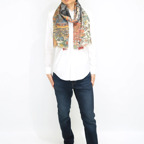 生地感よりカジュアルな普段使いにも、少しフォーマルなシーンでも使いやすいタイプです。スタイルや場所を問わず合わせることができる優れたストールです。
