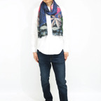 生地感よりカジュアルな普段使いにも、少しフォーマルなシーンでも使いやすいタイプです。スタイルや場所を問わず合わせることができる優れたストールです。