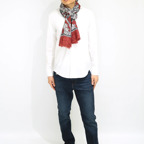 生地感よりカジュアルな普段使いにも、少しフォーマルなシーンでも使いやすいタイプです。スタイルや場所を問わず合わせることができる優れたストールです。