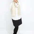 バランスがよいミドルサイズのため、ボリュームを抑えつつ様々な場面で活用できます。巻きでも羽織でもどちらでも使いやすくなっています。