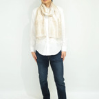 バランスがよいミドルサイズのため、ボリュームを抑えつつ様々な場面で活用できます。巻きでも羽織でもどちらでも使いやすくなっています。
