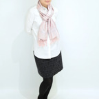 シルク100%の品の良い光沢感と美しいドレープが相まって、フォーマルな場面やパーティーシーンで大活躍します。シャツやブラウス、ドレスやスーツ、ジャケットなどのトップスと相性が抜群で、一巻きでいつものファッションを格上げできます。