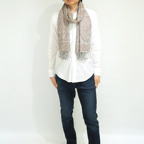 透け感のある生地で想像以上にスッキリまとまります。アウターの中にも収めやすく、インにアウトに扱いやすいストールです。