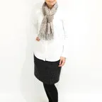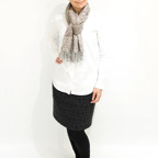 スタンダードな大判サイズで、首に巻くことはもちろん、室内でのひざ掛けにも、肩から羽織る使い方もできます。特に羽織りは、パッと華やかにエレガントな雰囲気に変わります。上半身を覆えるので、着ている服を気にせず合わせることができます。忙しい朝もコーディネートを気にする必要はありません。