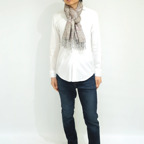 スタンダードな大判サイズで、首に巻くことはもちろん、室内でのひざ掛けにも、肩から羽織る使い方もできます。特に羽織りは、パッと華やかにエレガントな雰囲気に変わります。上半身を覆えるので、着ている服を気にせず合わせることができます。忙しい朝もコーディネートを気にする必要はありません。