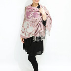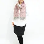 スタンダードな大判サイズで、首に巻くことはもちろん、室内でのひざ掛けにも、肩から羽織る使い方もできます。特に羽織りは、パッと華やかにエレガントな雰囲気に変わります。上半身を覆えるので、着ている服を気にせず合わせることができます。忙しい朝もコーディネートを気にする必要はありません。