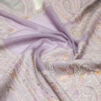 透け感のある生地に施された品の良い刺繍が美しく、装いのアクセントに最適です。カジュアルな普段使いにも、フォーマルな場面でも使いやすいタイプです。スタイルや場所を問わず合わせることができます。