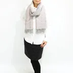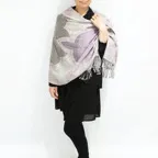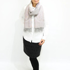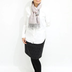 スタンダードな大判サイズで、首に巻くことはもちろん、室内でのひざ掛けにも、肩から羽織る使い方もできます。特に羽織りは、パッと華やかにエレガントな雰囲気に変わります。上半身を覆えるので、着ている服を気にせず合わせることができます。忙しい朝もコーディネートを気にする必要はありません。