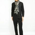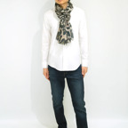 大判の長方形で、端面はナチュラルな断ち切り加工を施しています。どんな巻き方をしても表情豊かでお洒落な印象になります。また、折りたたんで使えばスッキリとシャープなシルエットになります。
