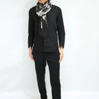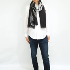 大判の長方形で、端面はナチュラルな断ち切り加工を施しています。どんな巻き方をしても表情豊かでお洒落な印象になります。また、折りたたんで使えばスッキリとシャープなシルエットになります。