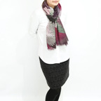スタンダードなサイズ感で巻きでも羽織でも扱いやすく、室内のひざ掛けにも重宝します。用途を変えて様々な形で活用できる優れたストールです。