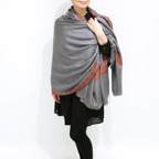 希少なパシュミナ素材を贅沢に使った大判ショールサイズ。一見シンプル見える手刺繍ですが、ディティールはさまざまな色糸が使われ、裏表の区別がつかないほどのクオリティーに仕上がっています。