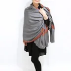 このカシミアストールには最も繊細なインドカシミール地方ラダック産カシミア糸(パシュミナ)が使われています。そのため手織りカシミアストールの中でも最も目が細く繊細な生地となっています。薄くて軽くてやわらかい最上級の一枚です。