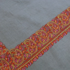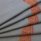 希少なパシュミナ素材を贅沢に使った大判ショールサイズ。一見シンプル見える手刺繍ですが、ディティールはさまざまな色糸が使われ、裏表の区別がつかないほどのクオリティーに仕上がっています。