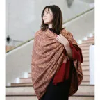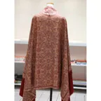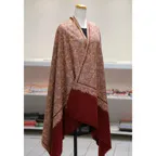 195cm×100cm大判ショールサイズで、巻きでも羽織でもどちらも使いやすいストールです。特に羽織は全面に施された刺繍が美しく輝き、サッとあしらうだけでゴージャスな雰囲気に変化します。横幅が特に長いのでドレスや着物などの羽織物としても重宝します。