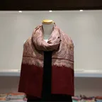 このカシミアストールには最も繊細なインドカシミール地方ラダック産カシミア糸(パシュミナ)が使われています。そのため手織りカシミアストールの中でも最も目が細く繊細な生地となっています。薄くて軽くてやわらかい最上級の一枚です。