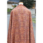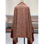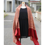 195cm×100cm大判ショールサイズで、巻きでも羽織でもどちらも使いやすいストールです。特に羽織は全面に施された刺繍が美しく輝き、サッとあしらうだけでゴージャスな雰囲気に変化します。横幅が特に長いのでドレスや着物などの羽織物としても重宝します。