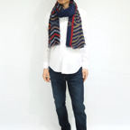 サイズの大きなショールタイプで、首に巻くことはもちろん、室内でのひざ掛けにも、肩から羽織る使い方もできます。