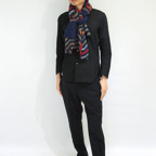 デザインに沿って立体刺繍を施した珍しいショール。メリハリのあるデザインでゆるっと巻くだけでアクセント効果が高くなっています。