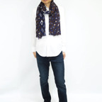 ウールの温かみのある質感とプリント刺繍を組み合わせた珍しいストール。どんな巻き方をしてもアクセント効果が高くなっています。