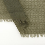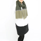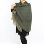 非常に大きなショールサイズで、広げて羽織れば上半身をすっぽりと覆うことができます。縦横の長さも十分にあるため、巻き方の自由度が広がります。程よいボリューム感と立体感を簡単につくることができるため、一巻きでこなれた印象になります。面積もあるので、真夏の室内での冷房対策や膝掛けとしても使いやすくなっています。