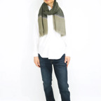 非常に大きなショールサイズで、広げて羽織れば上半身をすっぽりと覆うことができます。縦横の長さも十分にあるため、巻き方の自由度が広がります。程よいボリューム感と立体感を簡単につくることができるため、一巻きでこなれた印象になります。面積もあるので、真夏の室内での冷房対策や膝掛けとしても使いやすくなっています。