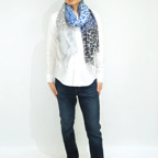 非常に大きなショールサイズで、広げて羽織れば上半身をすっぽりと覆うことができます。縦横の長さも十分にあるため、巻き方の自由度が広がります。程よいボリューム感と立体感を簡単につくることができるため、一巻きでこなれた印象になります。面積もあるので、真夏の室内での冷房対策や膝掛けとしても使いやすくなっています。